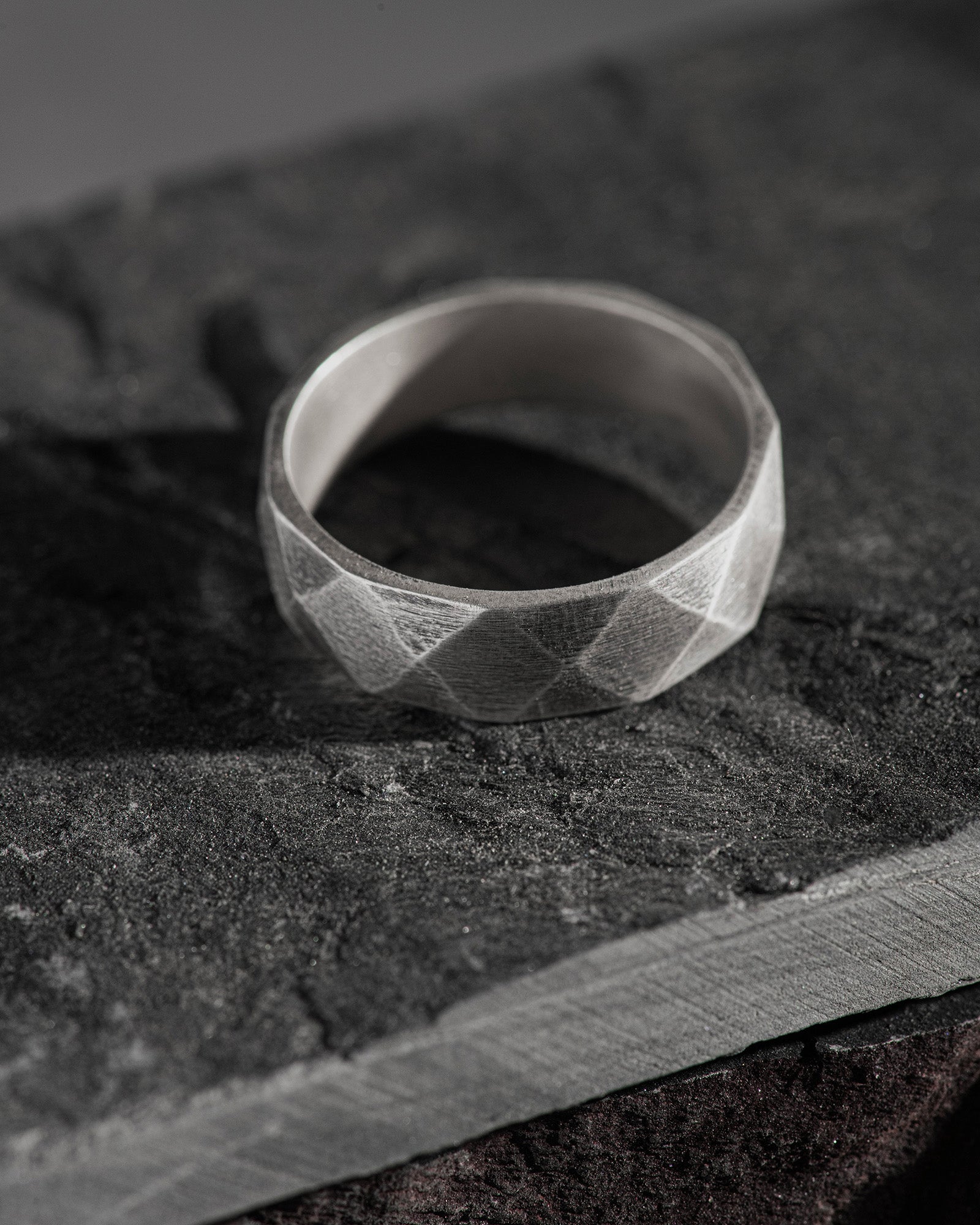 The CUBISM silver ring embodies modern design and symbolic content. Its unique shape, composed of geometric elements, reflects structure, balance, and harmony.