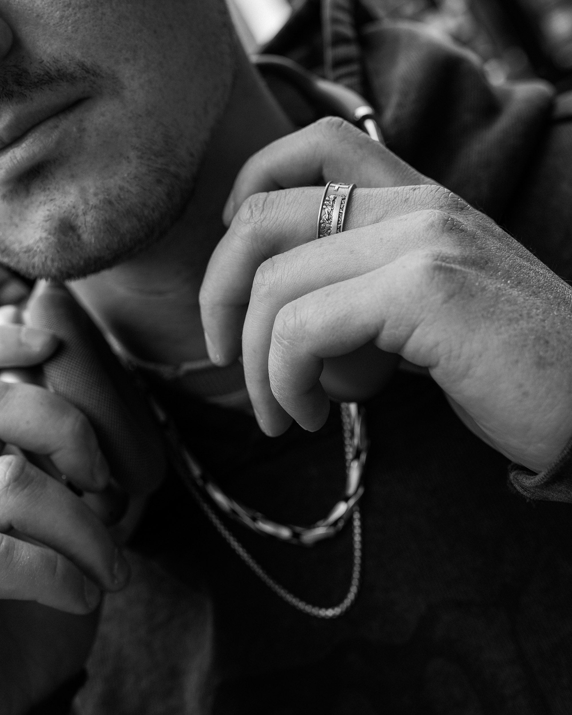 Placement and fonts are done in the Reytel’ signature style (if you have specific preferences, please specify in the engraving field). You can choose your own text or symbol that is important to you, and we will engrave it on the inner side of the ring. For example, you can engrave a name "Denys," a date "07/04/2024," coordinates "44°23'52°25'-22°08'40°13'," or a short phrase "The spirit that tears the body to battle." Example: «07/04/2024» or «My home is my fortress.»
