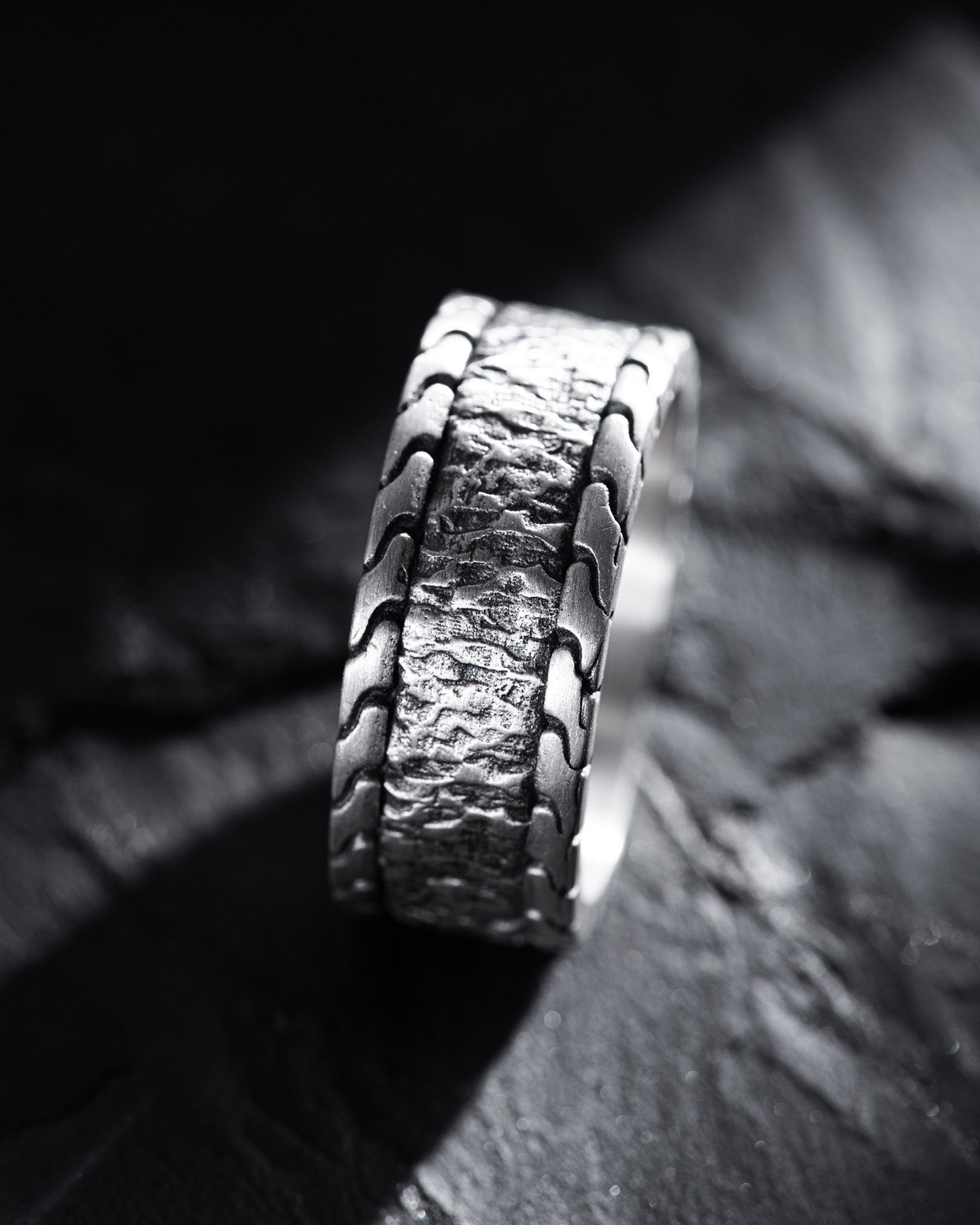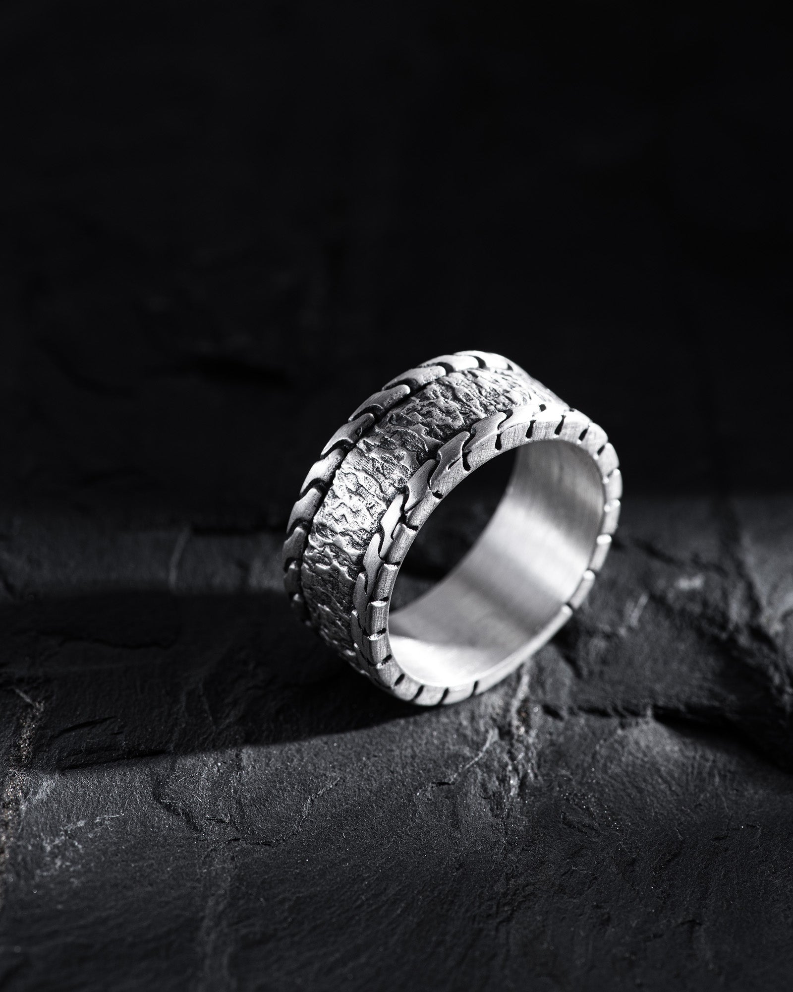 The Silver Ring THE ROAD symbolizes journeys, quests, and the drive to reach new heights. Its design resembles an endless road, embodying the idea of constant movement forward and personal growth. This ring is perfect for men who value adventures, new experiences, and never settling for less. THE ROAD will be a great addition to any outfit, highlighting your determination and pursuit of new horizons.