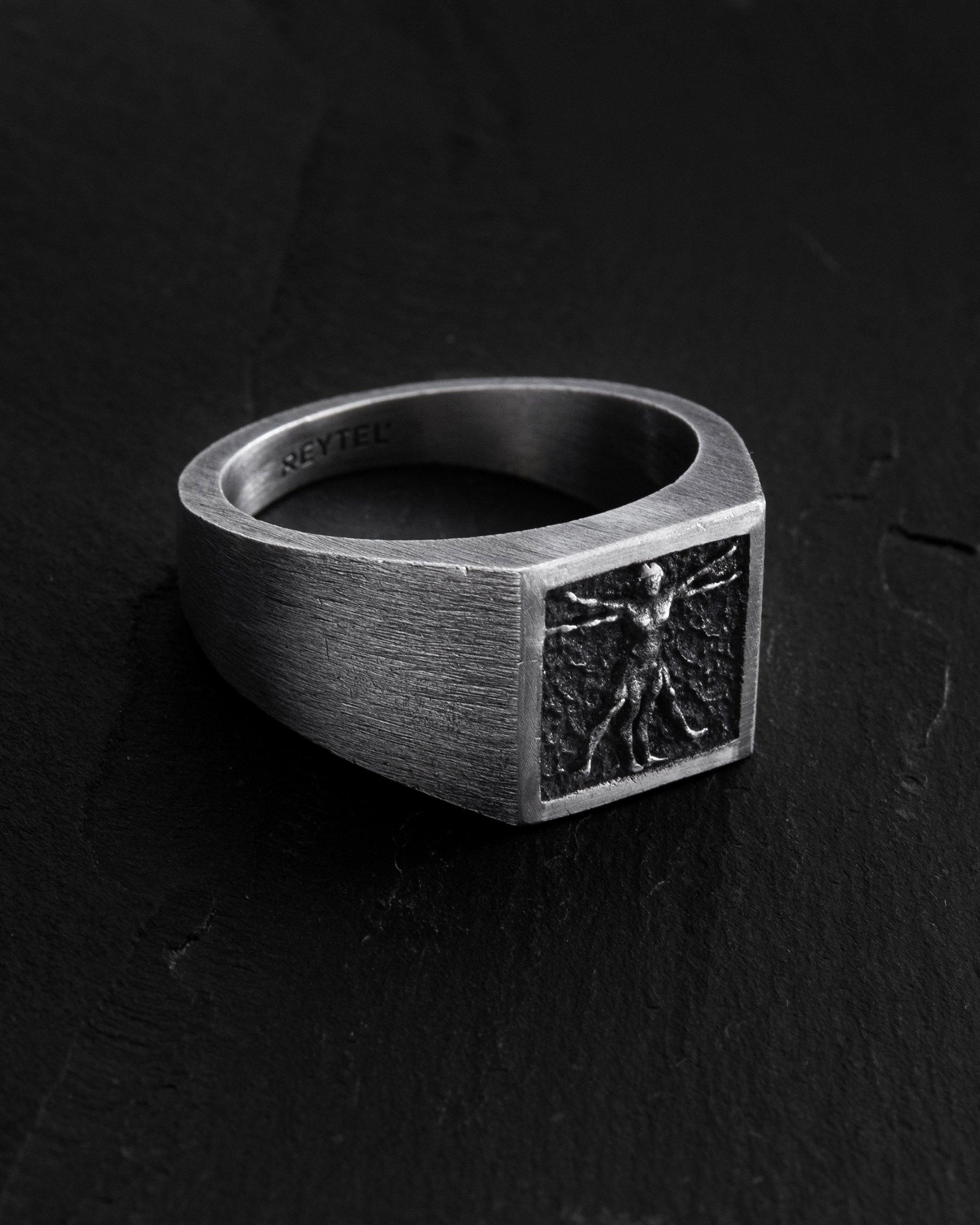 The symbolism of the "VITRUVIAN MAN" ring reflects the ideal of both physical and spiritual perfection. It represents harmony between the body, mind, and spirit, serving as a reminder to strive for inner balance and continuous self-improvement. The Vitruvian Man is a symbol of individual value, potential, and balance in all aspects of life.