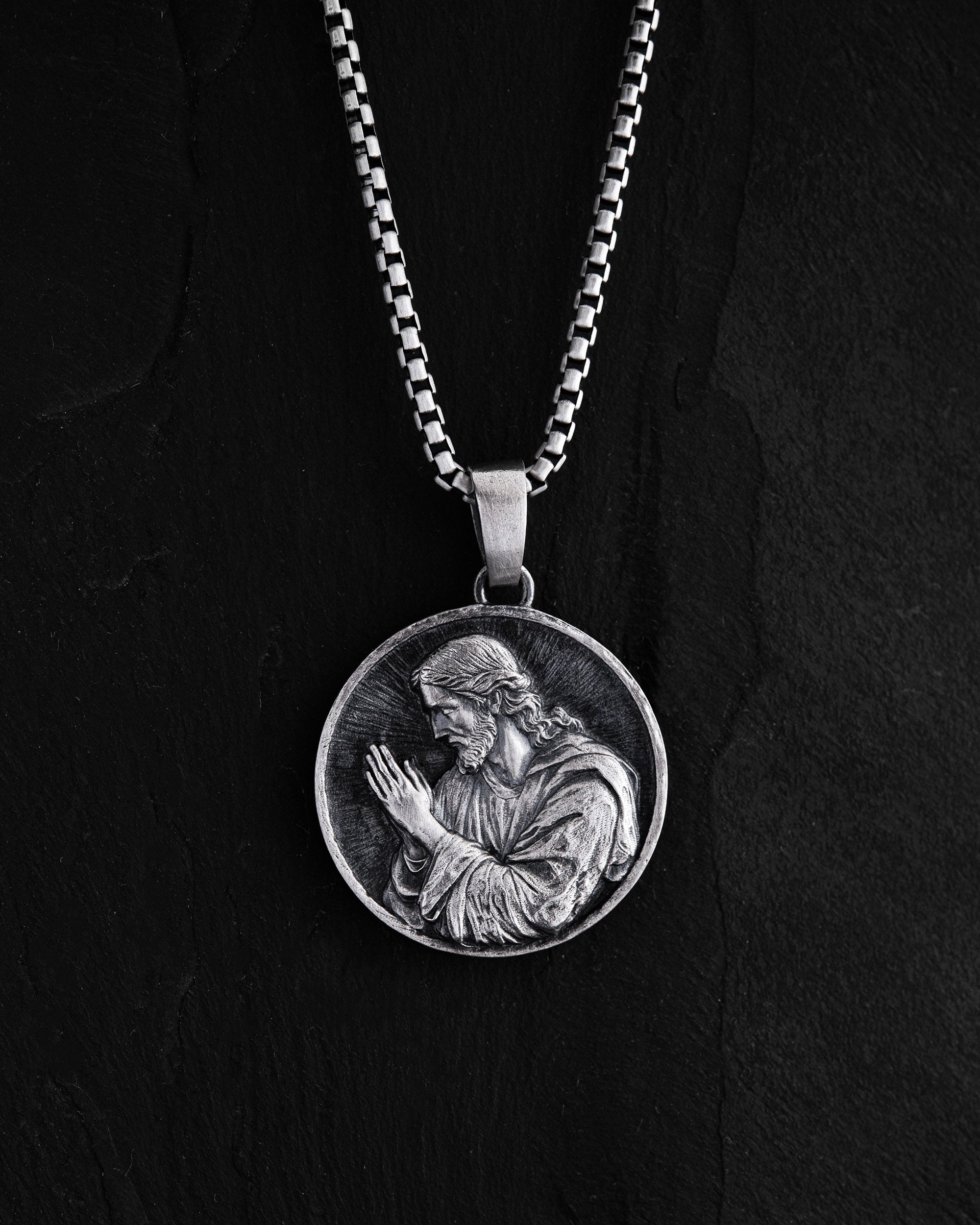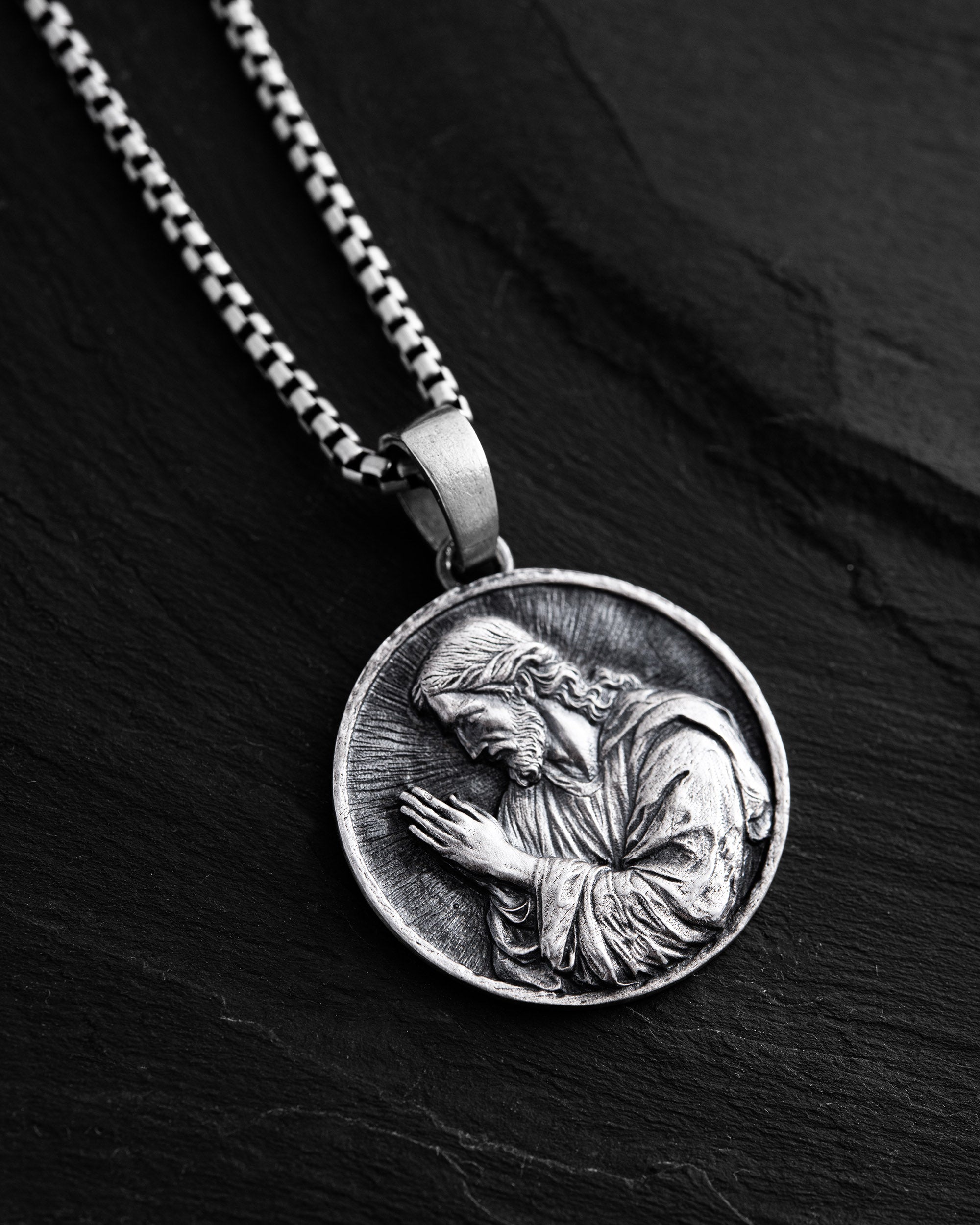 Le pendentif en argent SALVATORE (en italien : « Sauveur ») est une pièce sacrée qui incarne la foi, l'espoir et la protection spirituelle. L'image de Jésus-Christ dans un geste de prière symbolise la miséricorde, la force intérieure et l'amour inconditionnel qui guide dans les moments les plus sombres. Ce pendentif rappelle un soutien supérieur et appelle à approfondir sa foi.