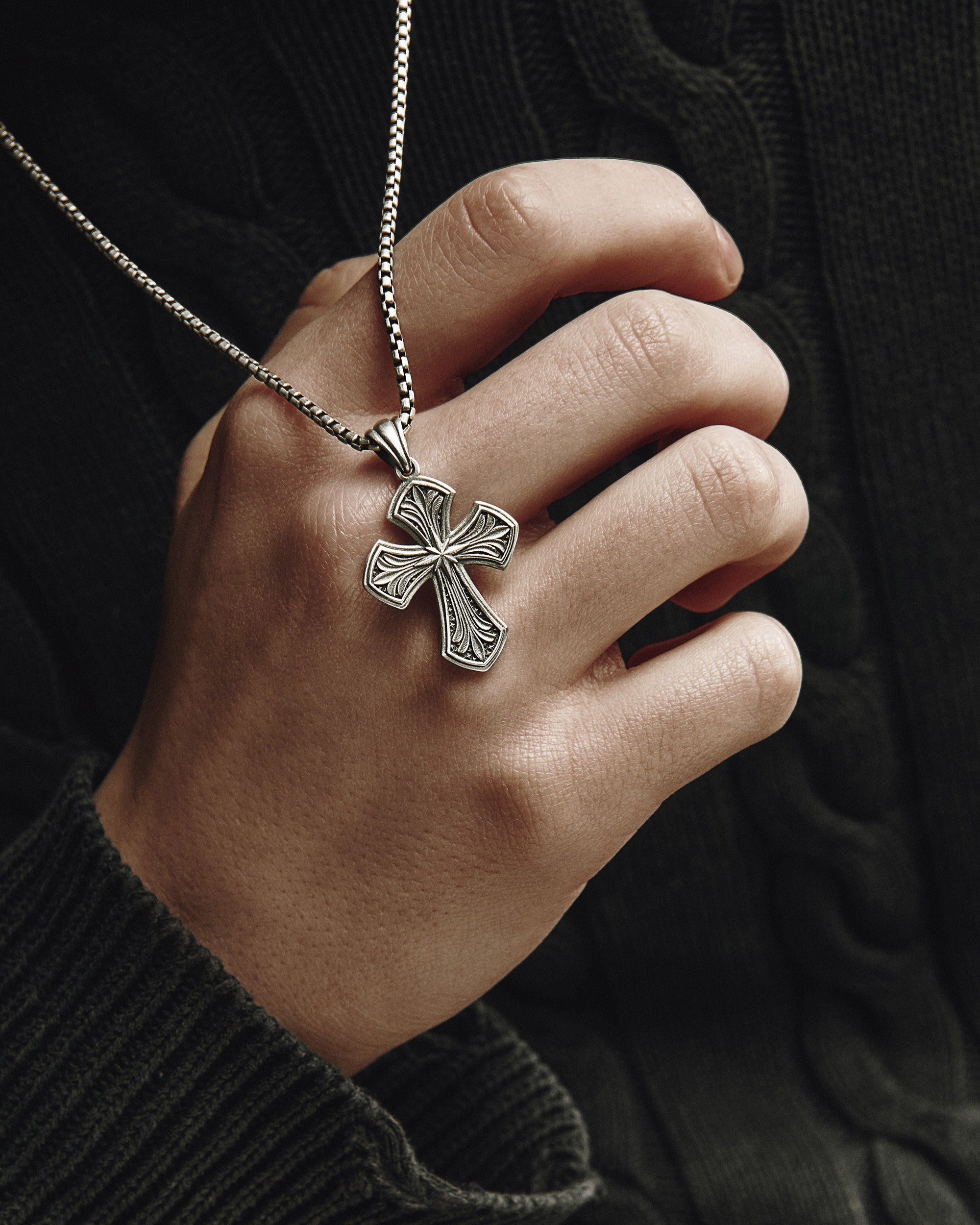 Text placement and fonts are executed in the Reytel’ brand style (if you have specific preferences, please indicate them in the engraving field). You can choose your own text or symbol that is important to you, and we will engrave it on the back of the pendant. For example, you can engrave a name "Denis", a date "07/04/2024", military data, birth certificate details, or a short phrase "Michael, pray to God for us". Example: «Michael, pray to God for us!»