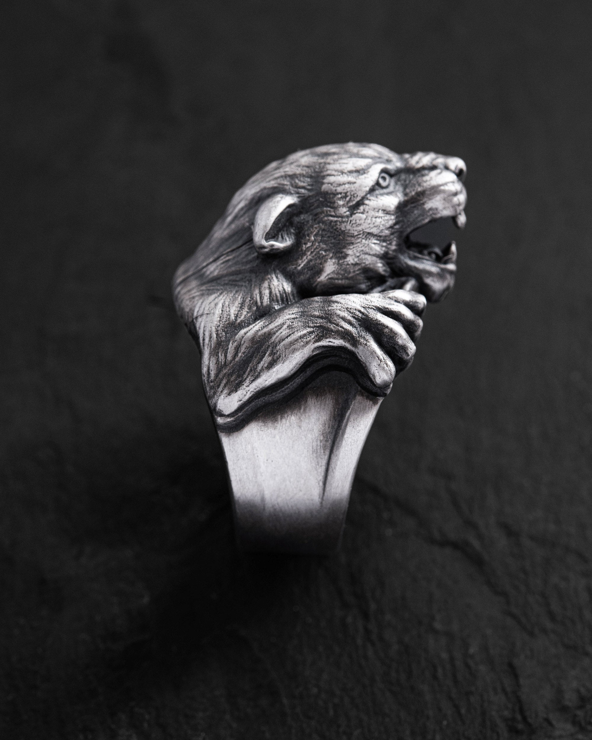 L'anello d'argento PANTERA incarna la grazia predatrice, la forza e la tensione interiore. La figura di una pantera in un balzo simboleggia la determinazione, la concentrazione e la prontezza a colpire senza preavviso. Ogni dettaglio – dai muscoli arcuati allo sguardo penetrante – cattura il momento di massima tensione, quando la bestia diventa pura energia. Questo anello da uomo è per coloro che non dubitano mai delle proprie forze e agiscono mentre gli altri esitano ancora. Perché a volte ciò che conta è un momento preciso.