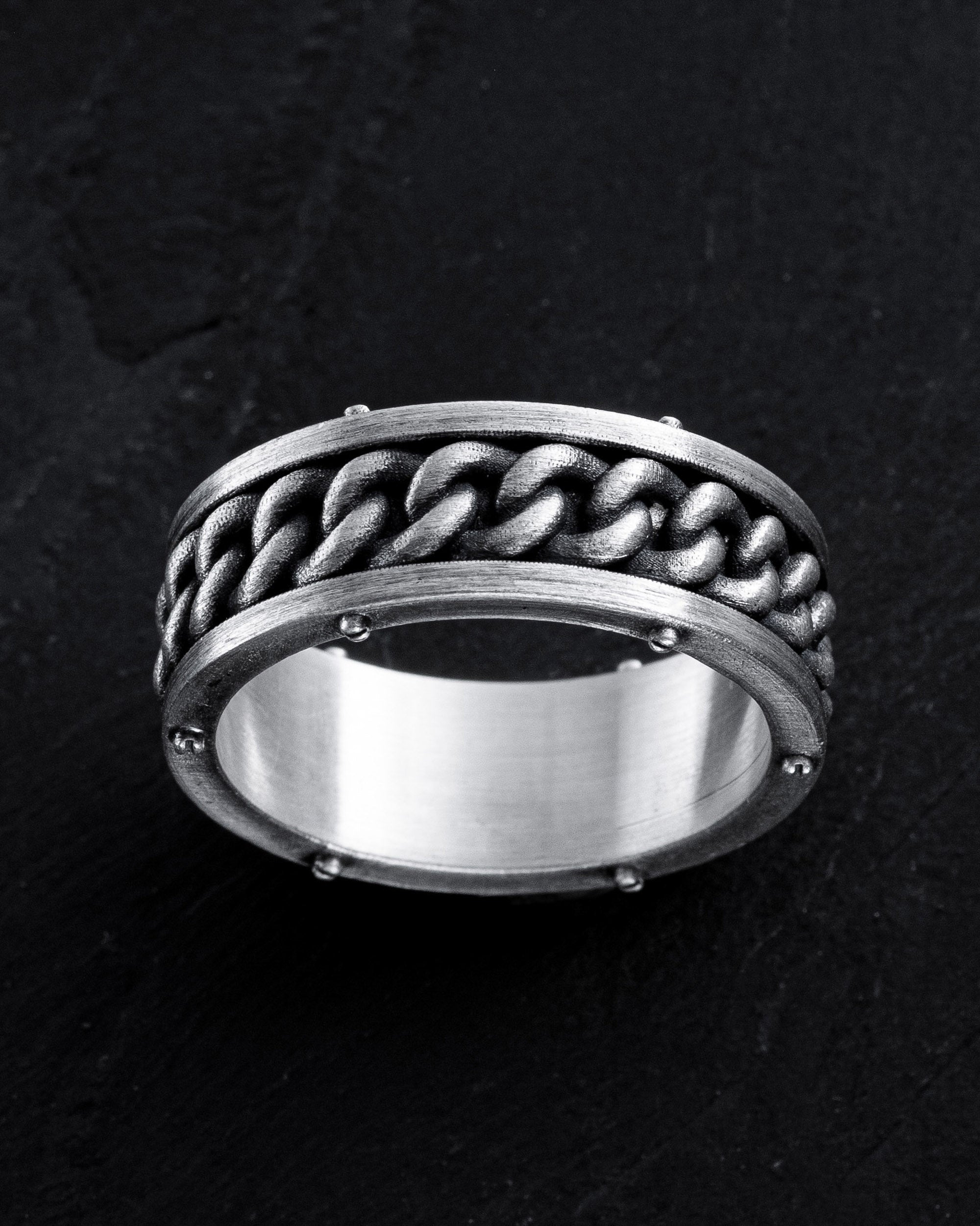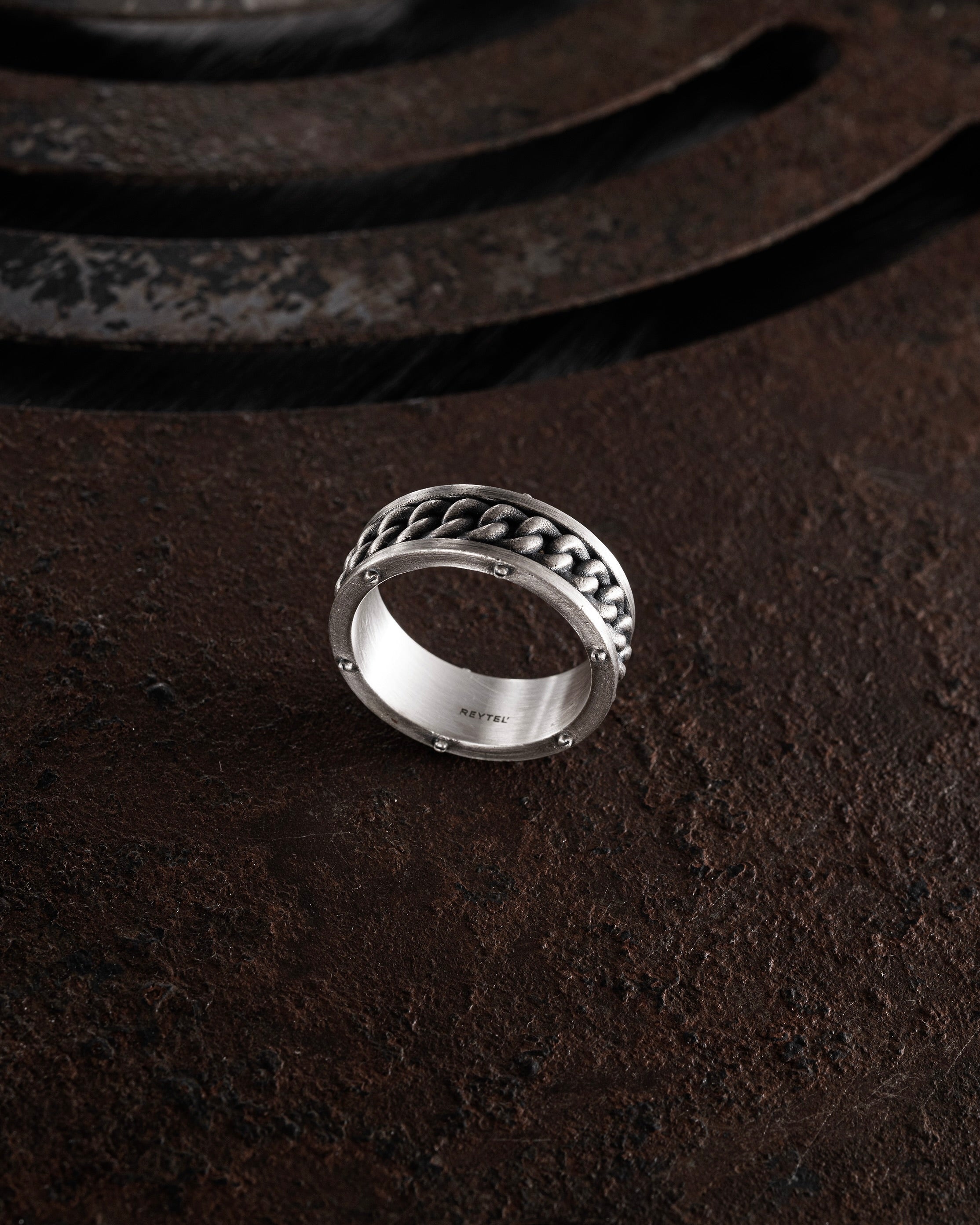 L'anello d'argento "RETAZ" (tradotto dallo slovacco come "catena") simboleggia la forza e la connessione. Il design dell'anello ricorda le maglie di una catena intrecciata, sottolineando l'importanza di connessioni affidabili e supporto reciproco. La catena rappresenta i legami indistruttibili e la resilienza in qualsiasi prova. Indossare questo anello serve a ricordare l'importanza delle relazioni forti e del sostegno dei propri cari, aiutando a mantenere la forza interiore e la stabilità.