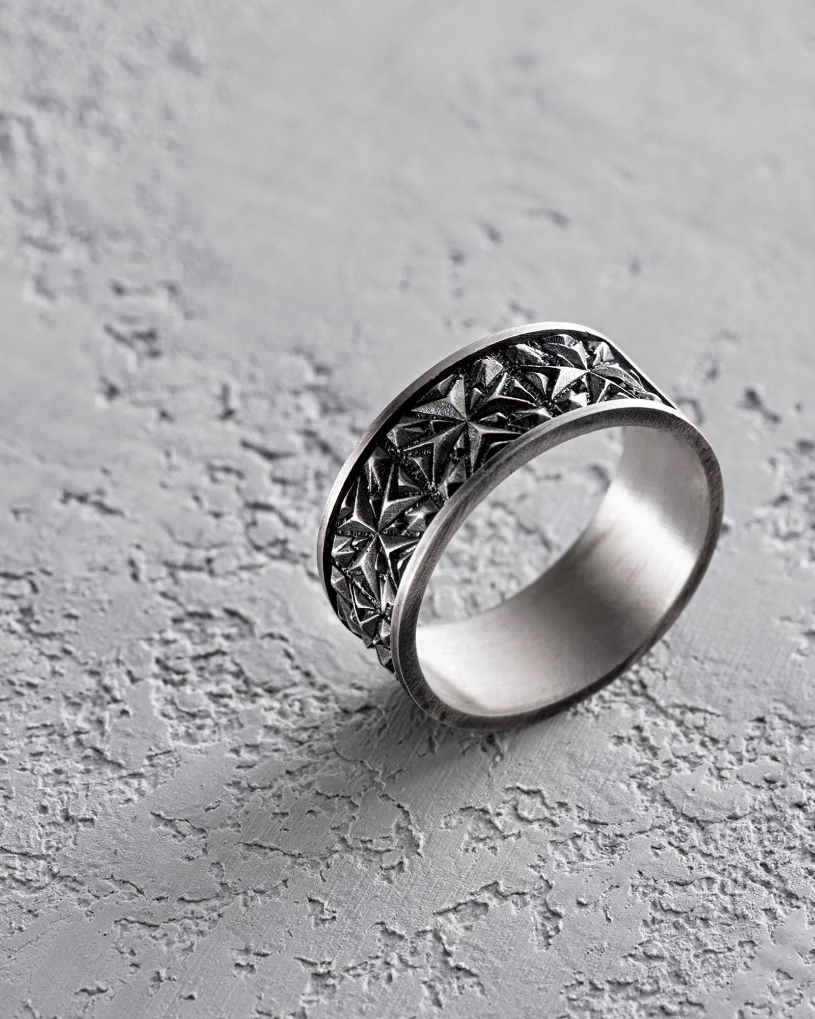 Questo anello sottolinea la disponibilità di chi lo indossa a mantenere la propria posizione, difendendo le proprie convinzioni e valori. "SPIKE" può anche simboleggiare la forza di volontà e la resistenza, ricordando l'importanza di essere resilienti e inflessibili nei momenti difficili.