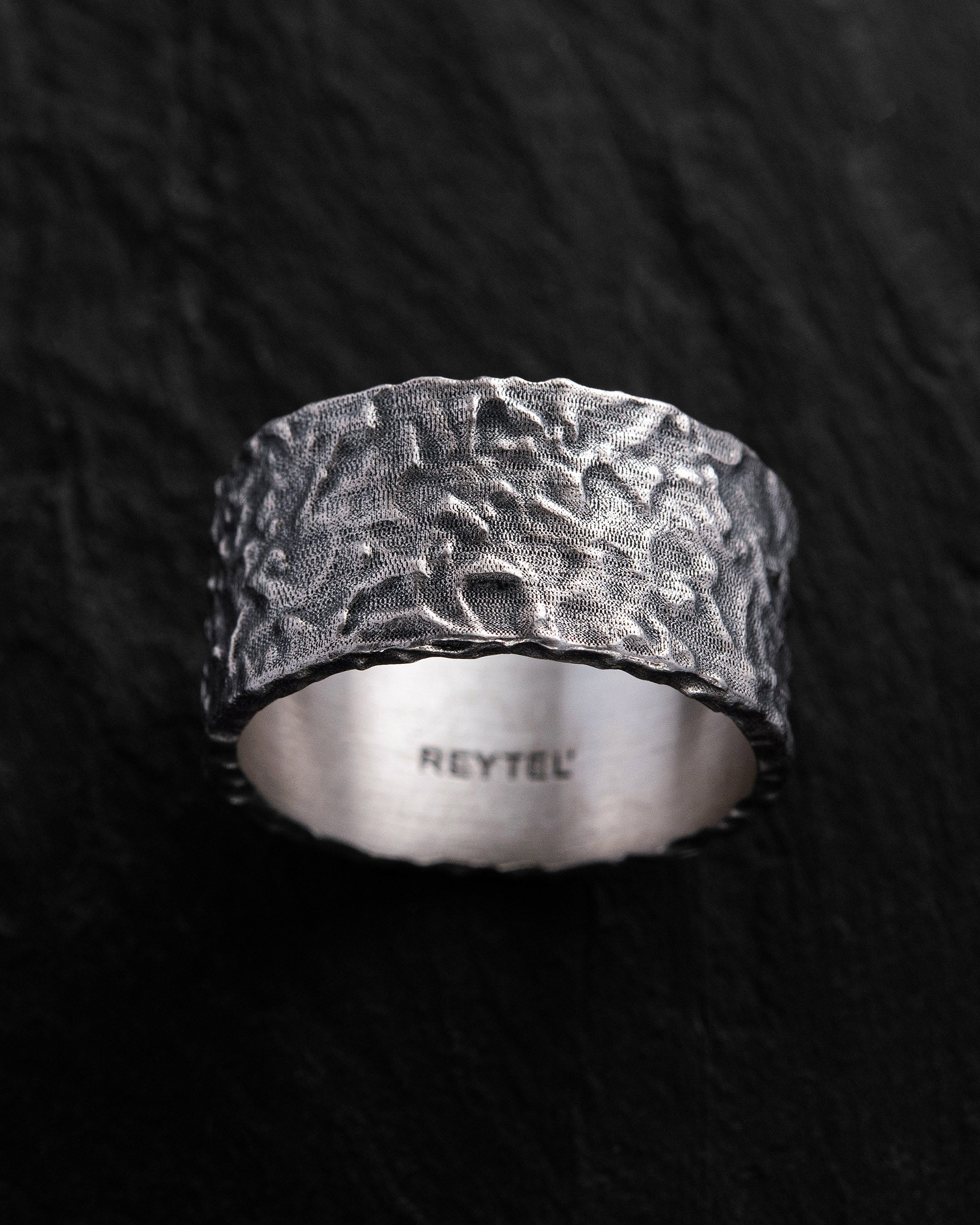 Il posizionamento e i caratteri vengono eseguiti nello stile della firma Reytel (se hai preferenze specifiche, specificalo nel campo dell'incisione). Puoi scegliere il testo o il simbolo che è importante per te e noi lo incideremo sul lato interno dell'anello. Ad esempio, puoi incidere un nome "Denys", una data "07/04/2024", le coordinate "44°23'52°25'-22°08'40°13'" o una breve frase "Lo spirito che dilania il corpo alla battaglia". Esempio: «07/04/2024» oppure «La mia casa è la mia fortezza.»