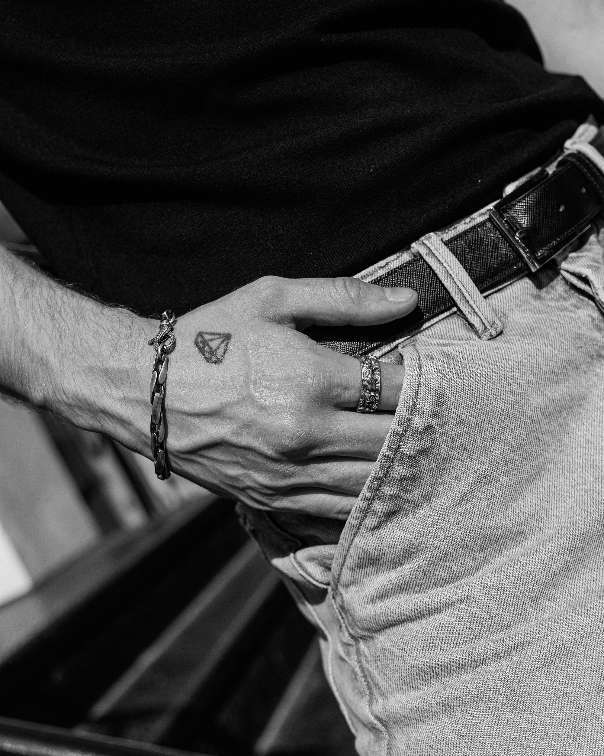 Il bracciale in argento "TURBEN" è un simbolo di dinamismo, forza e incessante movimento in avanti. Il nome "TURBEN" deriva dalla parola latina "turbo", che significa "vortice", "flusso" o "movimento", sottolineando l'energia del cambiamento e dello sviluppo costante.