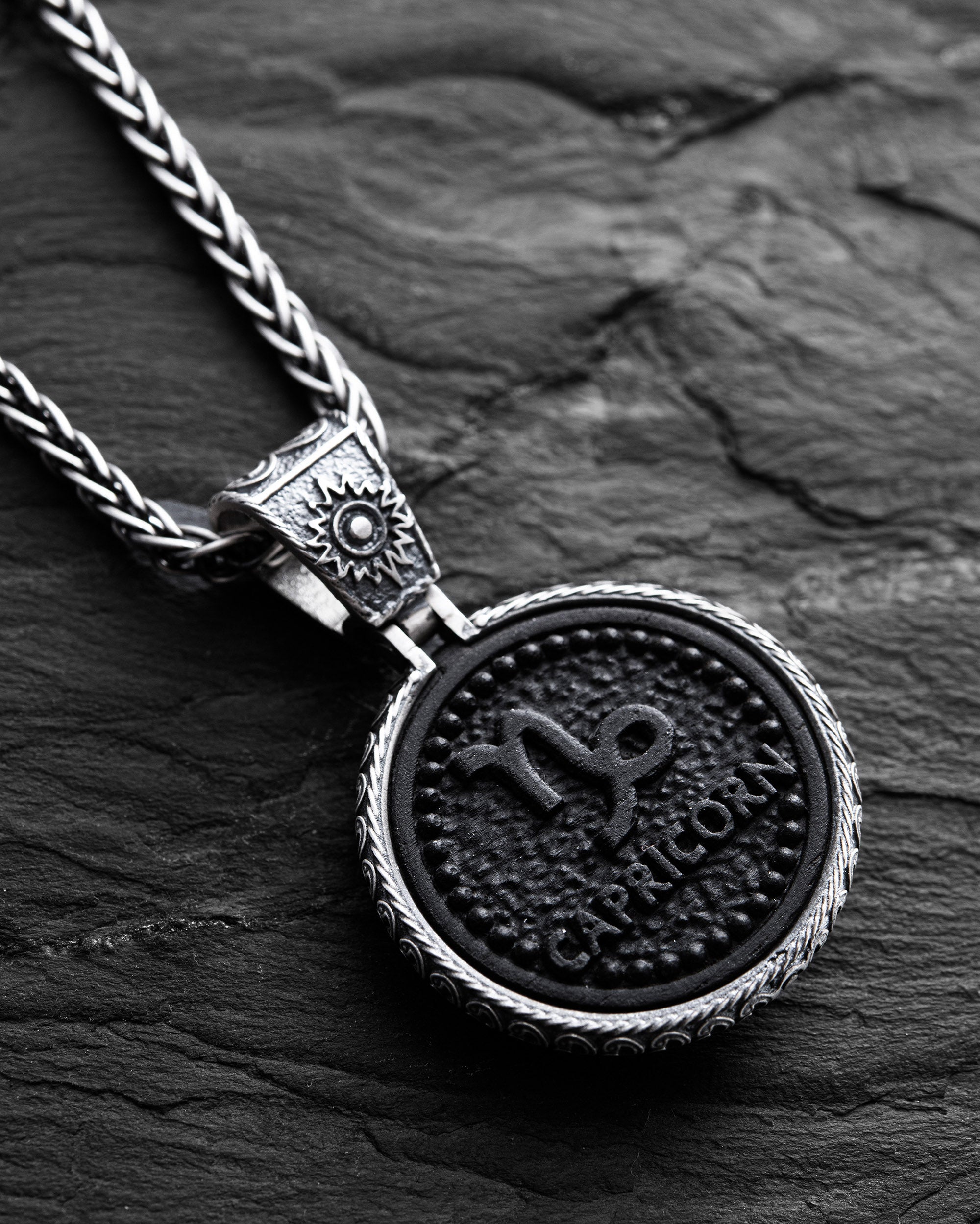Il ciondolo in argento Segno zodiacale Capricorno con legno di ebano simboleggia l'ambizione, la resistenza e la forza di carattere. Il Capricorno è un segno di disciplina, determinazione e responsabilità, che non ha paura del duro lavoro per raggiungere gli obiettivi. L'ebano aggiunge profondità e nobiltà al pezzo, sottolineando la serietà e la stabilità di questo segno.