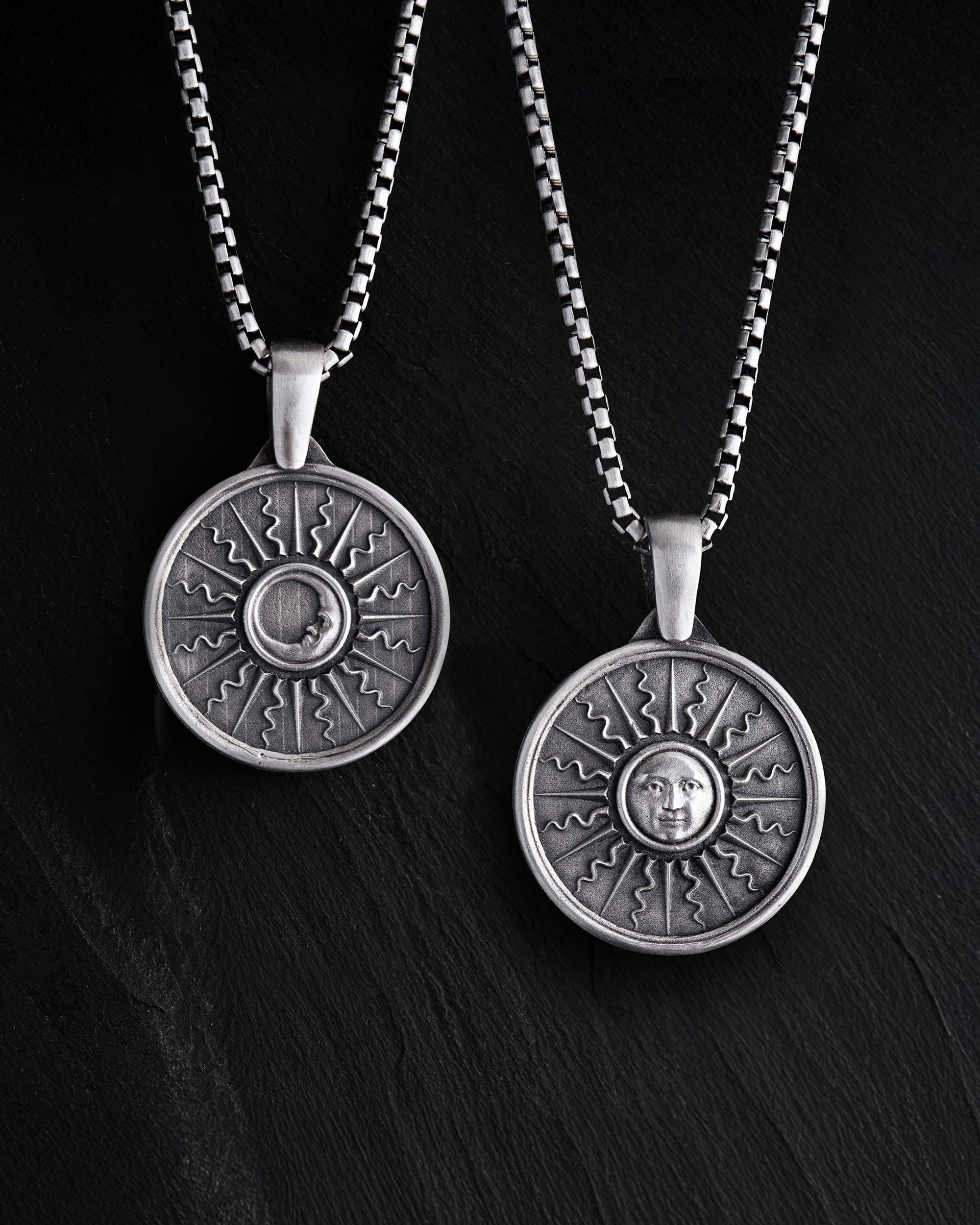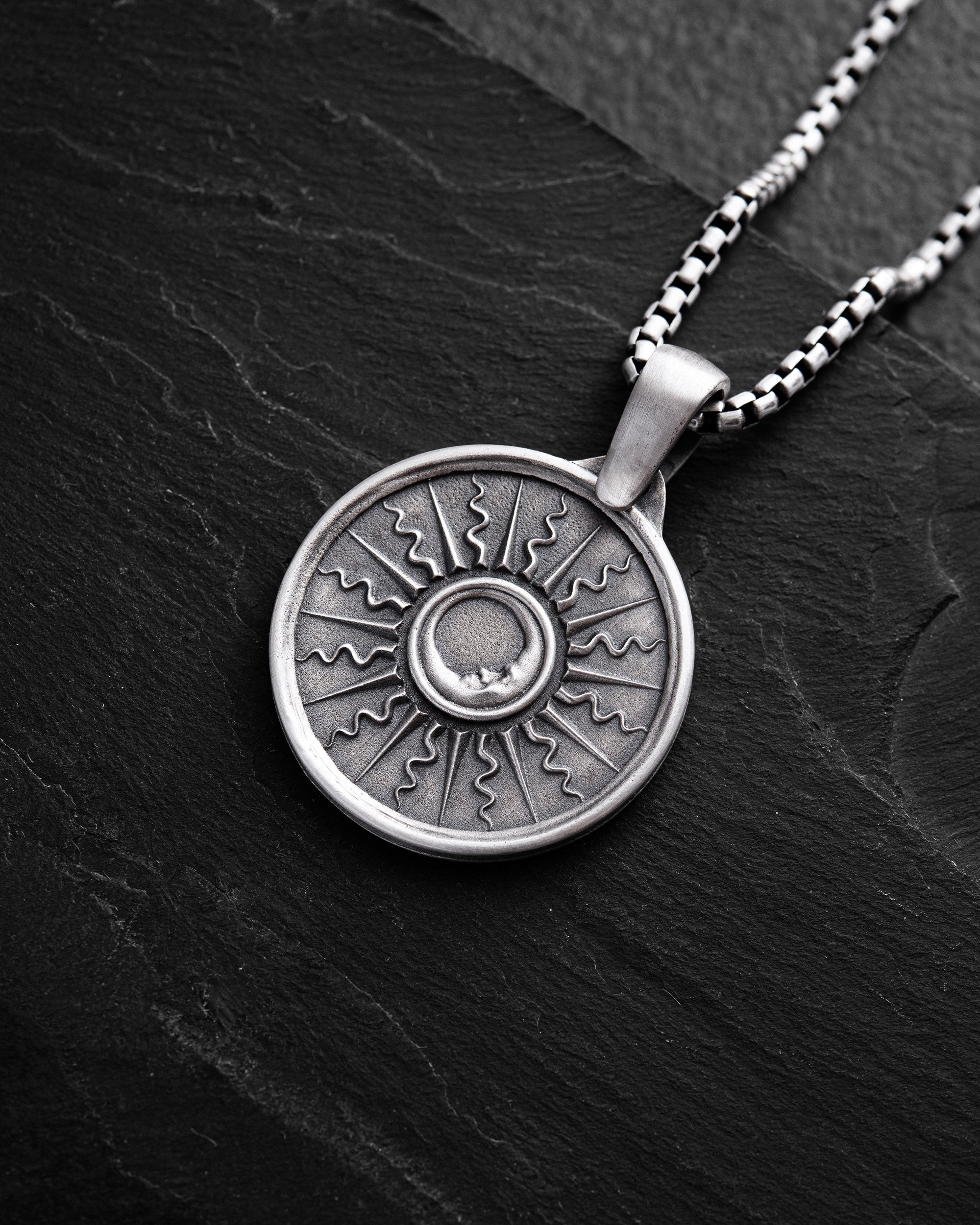 Il ciondolo d'argento SOLE e LUNA è un talismano a doppia faccia che incarna l'equilibrio degli opposti. Un lato presenta il Sole, un simbolo di energia, chiarezza, forza e azione. L'altro lato raffigura la Luna, che rappresenta l'intuizione, la calma, la profondità e la visione emotiva. Insieme formano un'armonia di giorno e notte, conscio e subconscio, mondo esterno e stato interiore. Questo ciondolo è scelto da coloro che apprezzano l'equilibrio nella vita, sanno adattarsi ai cambiamenti e rimangono integri in ogni circostanza.