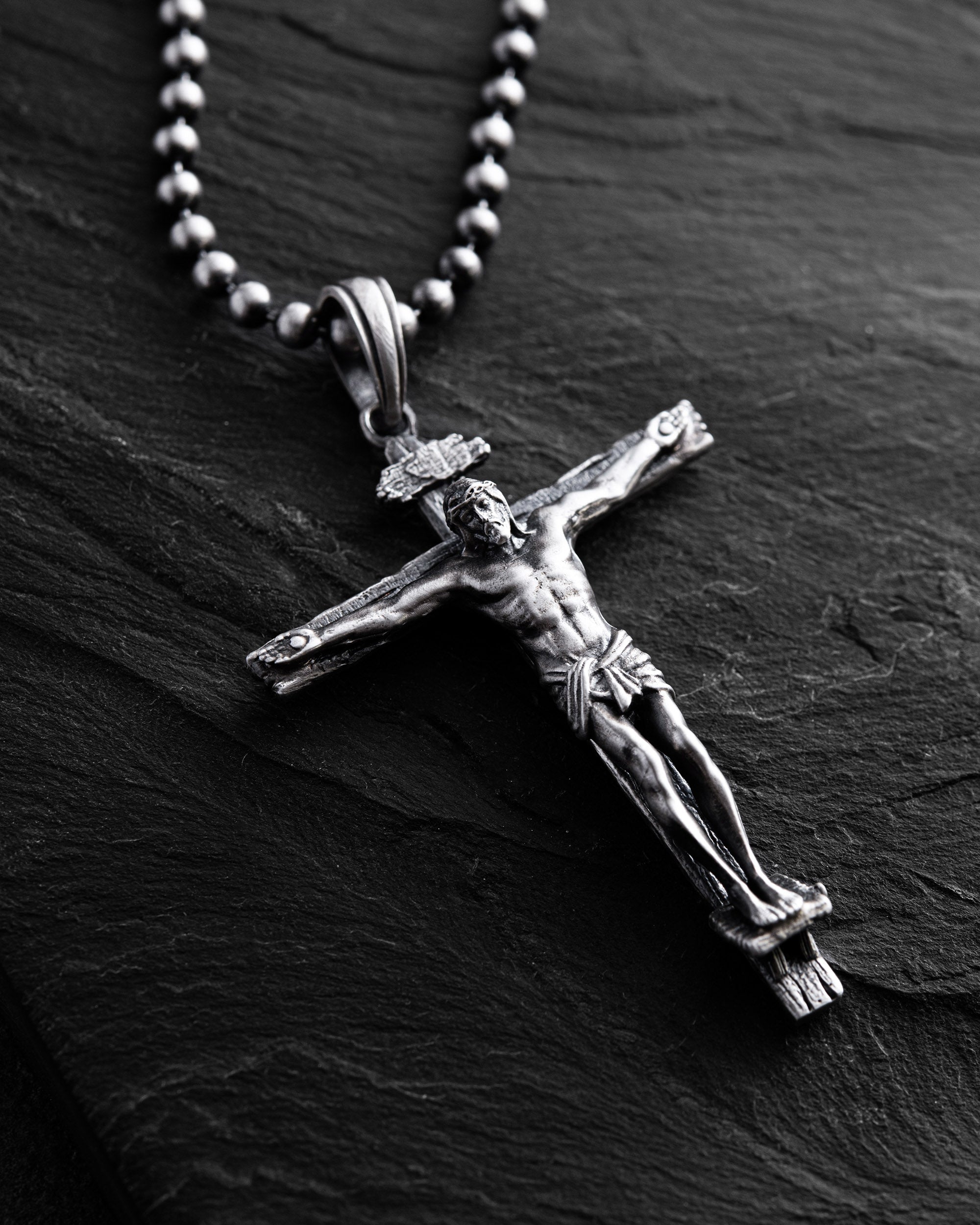 La croce d'argento CROCIFISSIONE di GESÙ CRISTO incarna un momento cruciale nella fede cristiana: la crocifissione di Gesù, che simboleggia l'amore infinito e la salvezza. Questa croce incoraggia la riflessione profonda e la crescita spirituale, servendo come promemoria quotidiano del potere della fede e della speranza per la vita eterna.