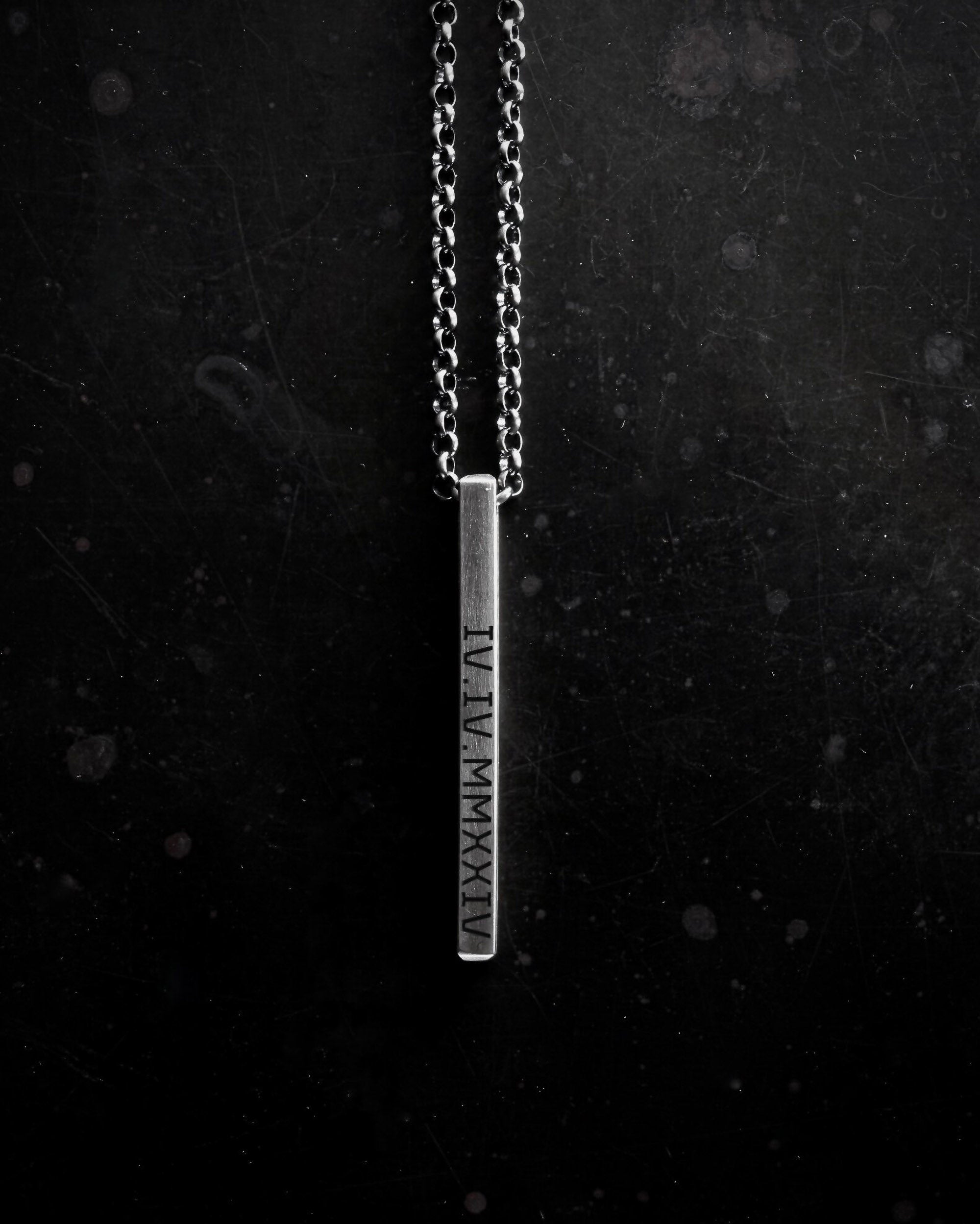 Il pendente in argento su catena "DATA" si distingue per il suo design minimalista. Questo accessorio offre la possibilità di incisione individuale, consentendo al proprietario di riflettere una data speciale o un messaggio importante, conferendo all'ornamento un significato unico.