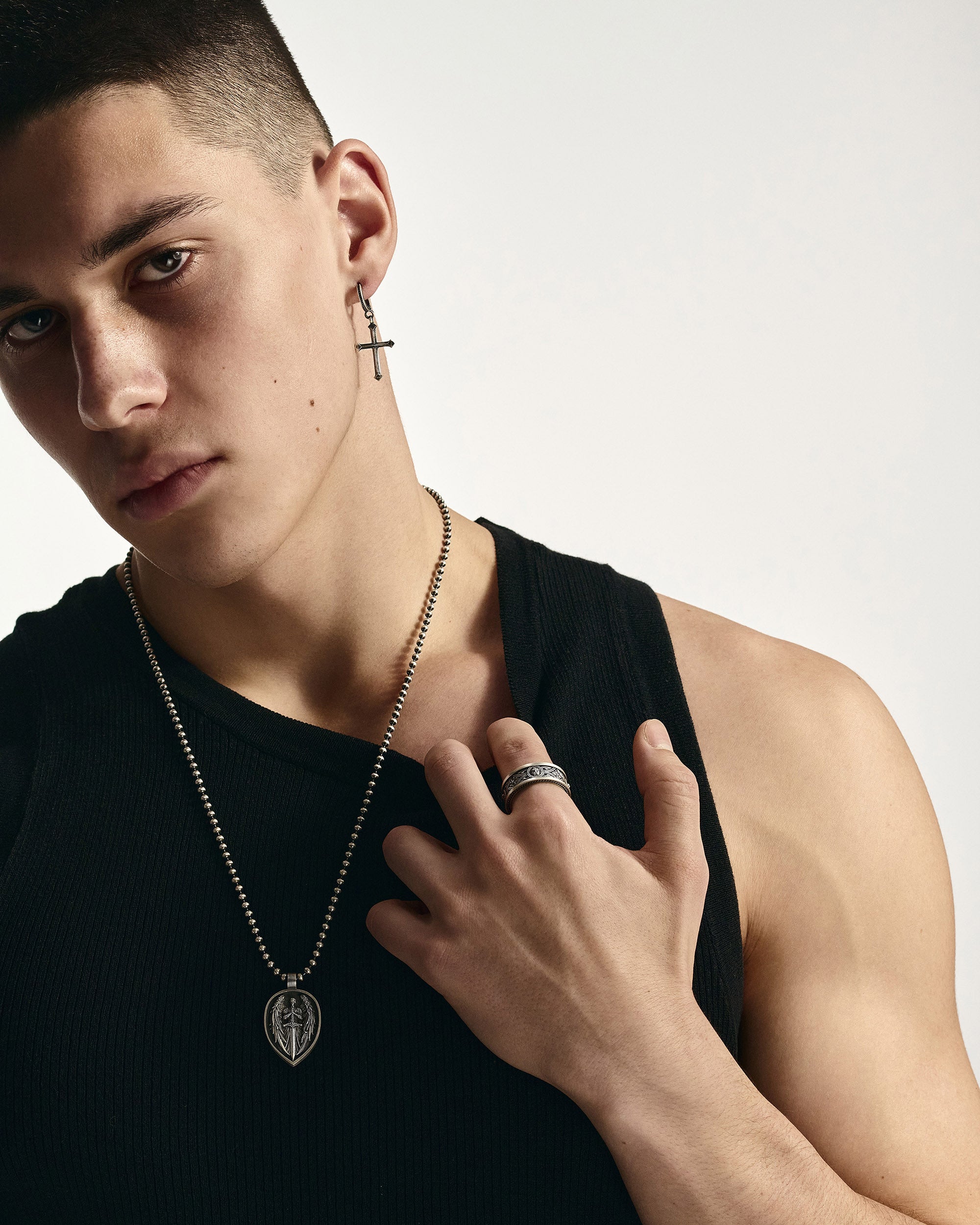 Il mono orecchino in argento "GOTHIC CROSS" rappresenta un design raffinato che incarna perfettamente il concetto di stile ed eleganza con motivi gotici. Questo orecchino singolo da uomo con intricati dettagli a forma di croce mette in mostra il potere dei simboli storici e dell'arte, offrendo un accento universale che si adatta facilmente a qualsiasi look. La croce gotica simboleggia la spiritualità e la forza, ricordando l'importanza della fede e della resilienza nella vita. Scegliendo questo orecchino, un uomo sottolinea la sua dedizione alle tradizioni e ai principi personali, mantenendo l'equilibrio e l'armonia nella sua vita.