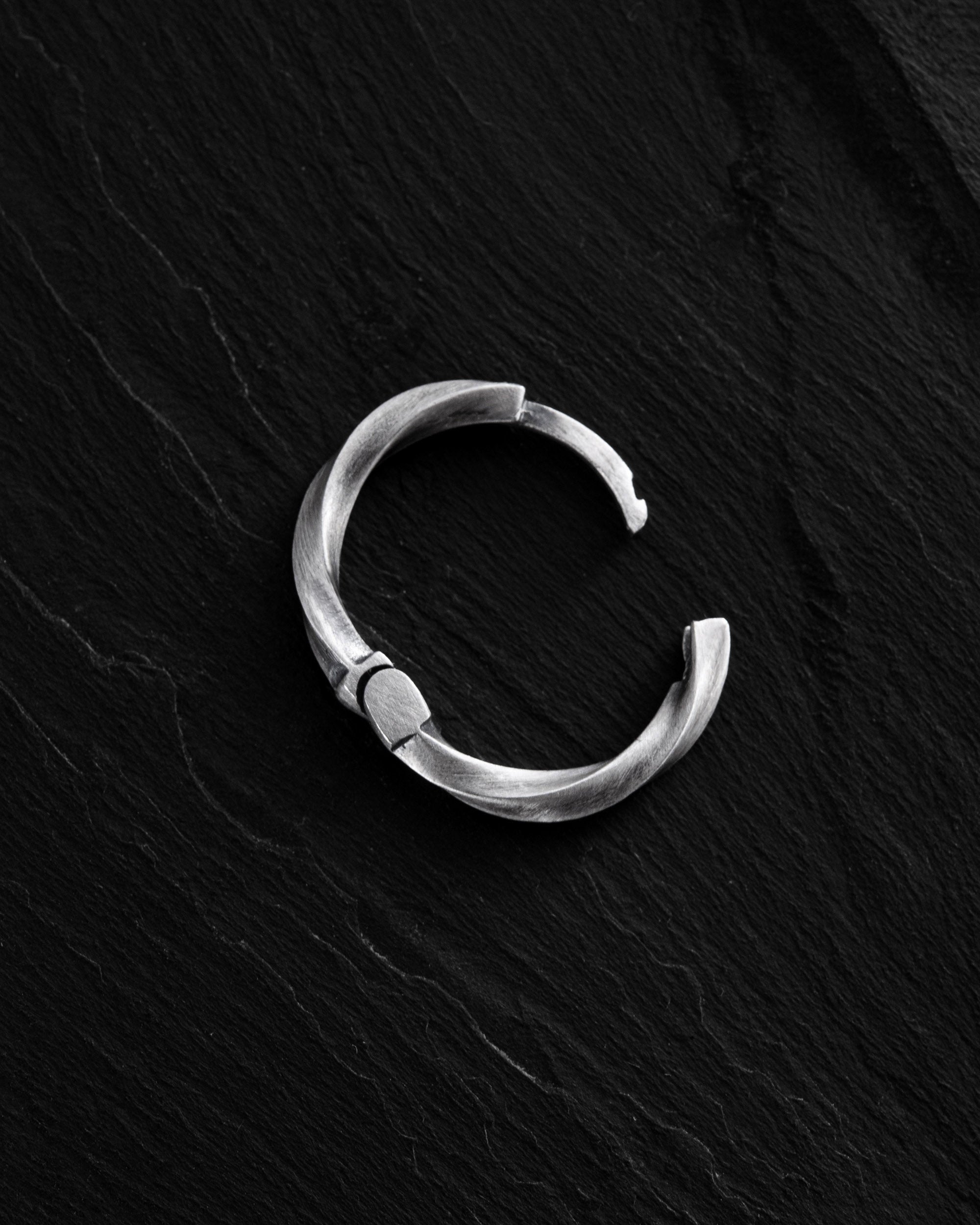 Il nome "LA SPIRALE DEL TEMPO" simboleggia il flusso, la ciclicità e l'inesorabile movimento in avanti del tempo. Questo orecchino a cerchio da uomo, realizzato in argento con finitura nera opaca, riflette l'idea di sviluppo eterno e di cambiamenti che accompagnano la vita di ogni persona. La spirale è un antico simbolo di infinito, crescita costante e trasformazione, sottolineando il significato profondo del proprio viaggio personale. L'orecchino "SPIRAL OF TIME" incarna la saggezza e la comprensione che ogni momento modella il nostro futuro.