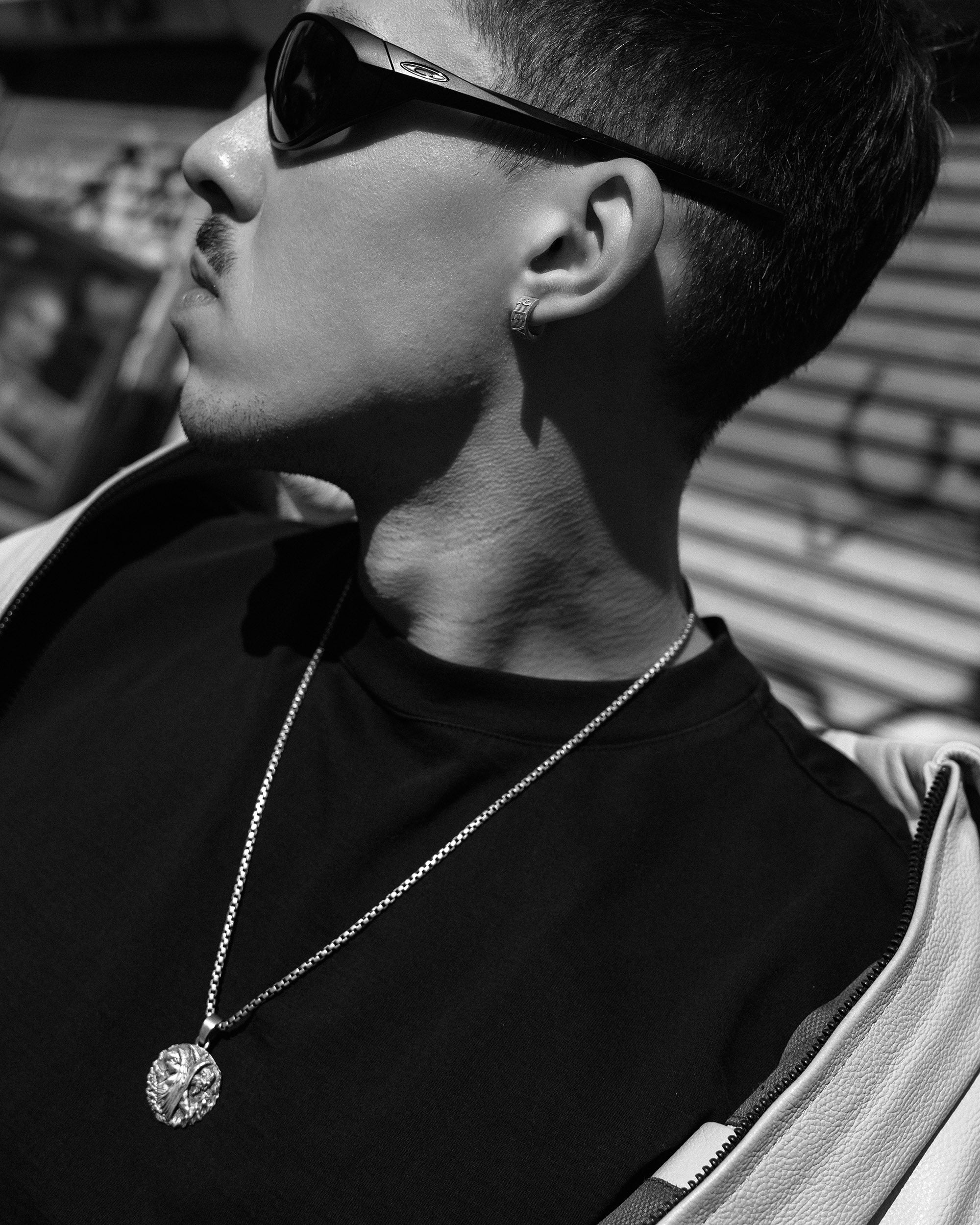 L'orecchino in argento "REYTEL" è un orecchino da uomo con una finitura nera opaca e un elegante logo su di esso. La forma ad anello simboleggia l'unità, la completezza e il flusso eterno. L'elemento di branding aggiunge individualità. È perfetto per chi cerca un modo unico di esprimersi, poiché ogni dettaglio in "REYTEL" parla di una ricerca della perfezione e della fiducia nel proprio stile.