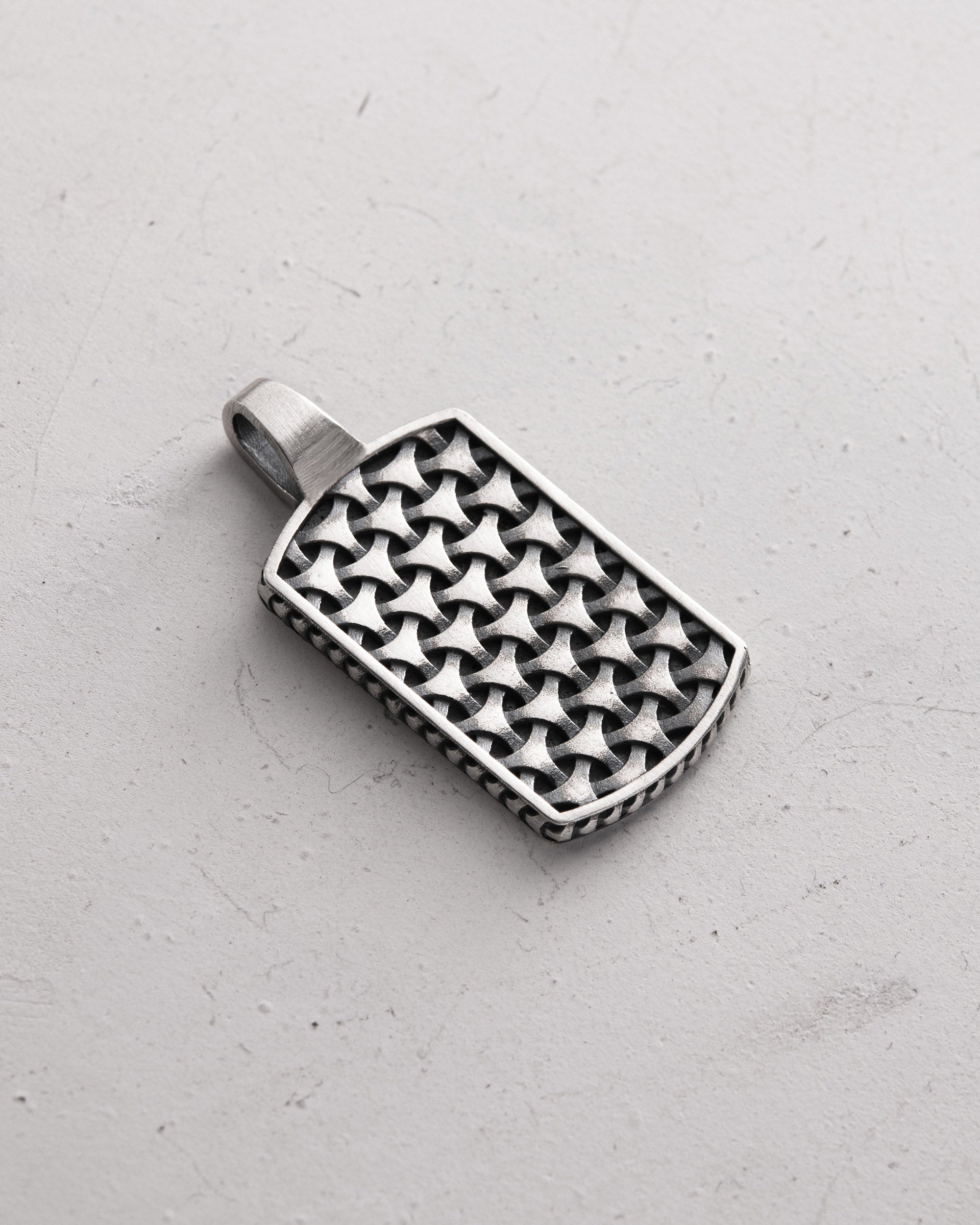 Silver pendant DEJAVU — the name comes from the French déjà vu, meaning “already seen.” It symbolizes the idea of repetition, memory, and a connection to the past, when a familiar experience appears in a new context. The embossed geometric pattern of the pendant recalls the repetition and rhythm of events that return in a renewed form. This piece embodies the link between time and experience, emphasizing that every new step is built on the path already taken. DEJAVU is a reminder that everything in life is interconnected, and the experiences of the past make us stronger in the present.